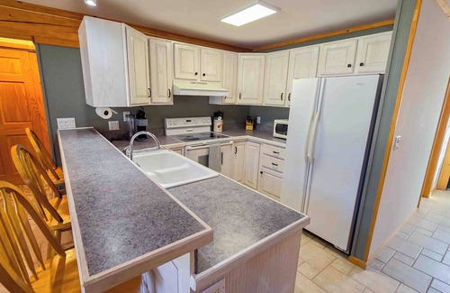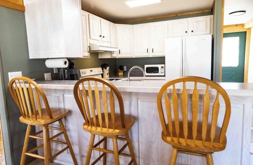 The kicthen is well appointed with everything you need for cooking meals. There are additional appliances such as a skillet and crock pot for easy meals.