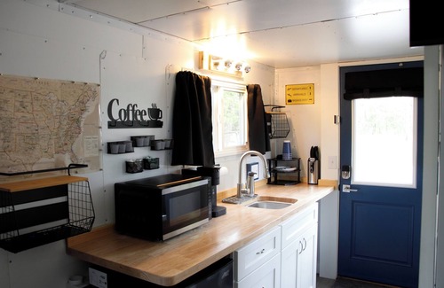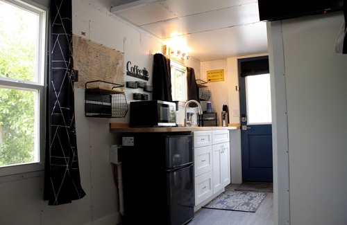 Your cozy cabin retreat awaits. This 1-bedroom gem is equipped with all the essentials for a comfortable stay, including WiFi, heating, and AC. Unwind on the queen-sized memory foam mattress and enjoy a restful night's sleep in a peaceful setting. The property features a spacious parking area, perfect for maneuvering a trailer within the private circular drive. This brand-new home is constructed from steel insulated panels, ensuring comfort and durability. Nestled on a tranquil 1.6-acre property, you'll enjoy the peaceful surroundings featuring a rustic red barn and ample space for your pets to roam freely. Prepare for a relaxing getaway in this cozy haven!