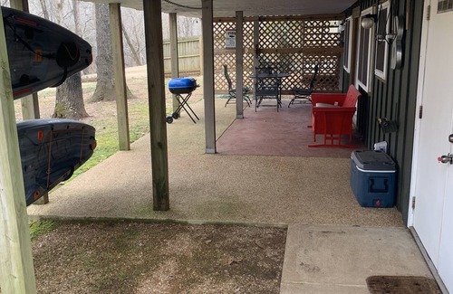 Cozy cabin with close access to river bring your kayak and fishing gear or sit on the deck for morning coffee. Also for cool weather evenings build a fire in the fire pit and enjoy the river rolling by with a friend