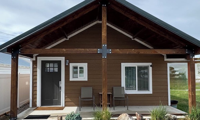 This charming in-town 1-bedroom, 1-bath house completed in 2020 offers a comfortable retreat. Unwind in the cozy living/dining area, featuring a plush sofa, vaulted ceilings, and dining table set in a warm, inviting atmosphere perfect for relaxation. The well-appointed kitchen includes full size appliances and w/d unit, with all the essentials for preparing your favorite meals. The tranquil bedroom with full sized bed promises restful nights. Accessed by a “hidden” bookcase door, a glamorous bathroom features a walk in shower and great lighting. Enjoy your morning coffee on the front porch, breathing in the crisp Montana air and taking in beautiful mountain views or calm quiet evenings enjoying the large secluded back patio and yard. With its convenient location close to Dillon’s amenities, yet offering a sense of secluded tranquility, this is the ideal home away from home for short or long term rental. Off street, private parking. All utilities included, including WiFi.