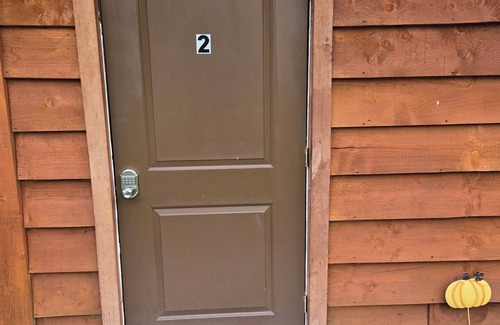 Welcome to this charming cabin#2 in Watkins Glen. Both cabin and bathroom are marked#2 on doors. The doors are painted brown. This brilliant retreat features 1 cozy bedroom with a nice queen bed, a wonderful bathroom with a shower and hair dryer, and essential amenities like AC, WiFi, and heating. Relax in this peaceful getaway and enjoy the serene surroundings. Feel free to reach out to us during your stay - we're happy to suggest local spots to check out.
