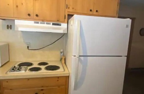 Upstairs there are 4 beds. One twin bed in a room by itself, off to each side of the stair there are sleeping areas, one bunk bed twin over full and one twin by itself. There is a smart TV in the bedroom. Downstairs there is a futon if you need more sleeping space then what is upstairs. There is a 65-inch smart TV in the living room with Netflix. There is Wi-Fi in the cabin and also a desk for a work area. There is base board heat and also a wood burning stove in the living room. In the kitchen you will find a small table for dining, a coffee station with a Keurig and all different kinds of coffee and hot coco. There is a microwave, and an oven/air fryer, there a normal stove top for cooking and a full side refrigerator. Also, a washer and driver in the hall closet. There is a Grill on the porch and a firepit in the back yard.