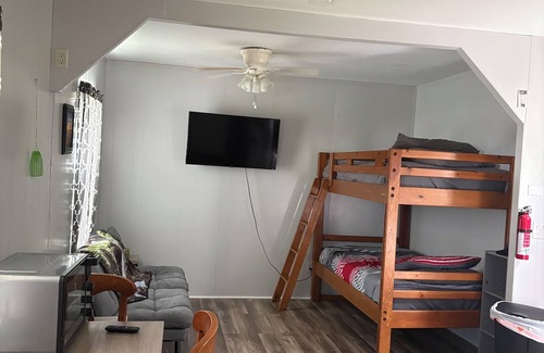 Get ready to relax in this cozy camp on private property with queen bed room, bath room, kitchen w/ fridge, stove, microwave, coffee pot, tv, couch, and extra twin bed. Washing machine and dryer on site. Utilities included. Quiet and across from convenience store. Just minutes from fishing, hunting and restaurants on your downtime.