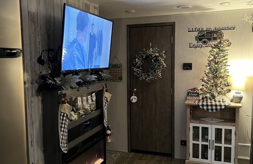 Outside provides many opportunities to come together with fellow campers or your family and friends. With a large deck beside the camper you can enjoy great conversation with other guest, friends and family. using the grill, griddle or outdoor stove to cook a delicious meal, all provided with the camper. The camper comes with two outdoor rugs, an outdoor love seat and two cushioned chairs with ottomans so you can enjoy the beautiful sunrise or sunset looking over the mountains and a gas firepit to use on those chilly evenings . A small outdoor refrigerator is also included to hold your favorite beverages! Coming soon is a small private deck that will be added to the camper site.