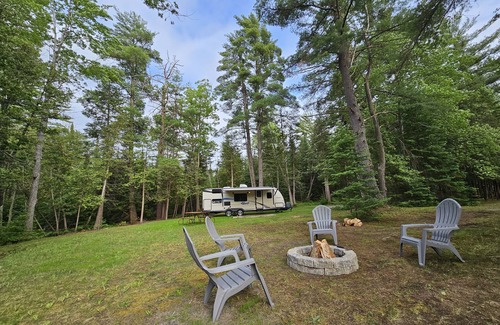 Looking for a unique camping experience without the large crowds of a conventional campground? Look no further! This single camping space is nestled in the north woods of Grayling on the banks of the AuSable River. This site is located just above the "Holy Waters" world renowned for its trout fishing . With over 1000 feet of river frontage all to yourself, your days can be spent fly fishing, kayaking, swimming, tubing, or just relaxing on the river bank. If you're looking to explore, shop, or get a bite to eat you can take a short (less than 5 minute) drive into town where you can enjoy some of our local restaurants and breweries, Paddle Hard Brew, Dead Bear Brew, and Grayling restaurant, to name a few. Be sure to indulge in some downtown shopping! Some of our favorites include, The Old Lumberyard Shoppes, Tip'n The Mitten, and North Country Corner. If you're looking to stay in nature Hartwick Pines State park is short drive away for a beautiful walk through the old growth forest.