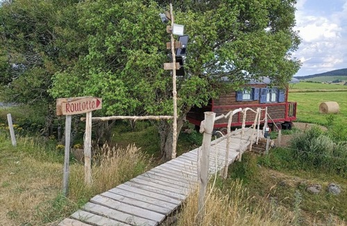 Located at the base of a volcano, surrounded by a stunning landscape along a traditional shepherding route, this caravan offers a unique experience inspired by the lifestyle of traditional shepherds. Historically, shepherds slept in wooden beds that traveled with them to the mountain pastures of Mézenc, where they could stay near their flocks. Here, you can immerse yourself in nature in a cozy caravan built with natural materials and fully equipped with heating for a warm, comfortable stay.