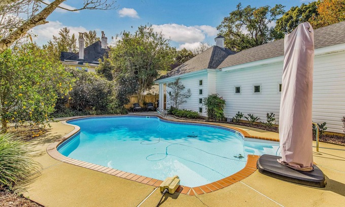 Welcome to the Carriage House. Escape to this one-bedroom, one-bath getaway located minutes from Downtown Pensacola. The inground pool, patio, and grill make your stay worthwhile. A pull-out sofa bed is located in the living room, making this house comfortable for up to four guests. There is a full-size washer and dryer, kitchen, office space, handicap-accessible shower, and stand-alone tub.