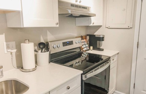 Our townhome has 3 bedrooms and 2.5 bathrooms with ensuite in master bedroom. The kitchen is equipped with everything you'll need to cook your own meal or bring in take out. Light breakfast is provided. There is a very cute deck with bistro tables and market lighting so you can enjoy the very private fenced in back yard. Plenty of room for 8 with the pull out queen size couch. High Speed Fiber Wifi is included with Smart TV in living room and another TV in the master bedroom, both with several streaming services provided.