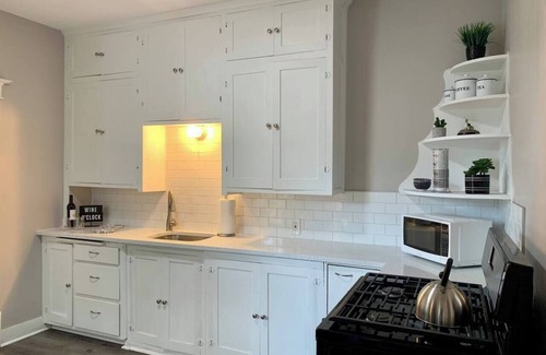 This unit is an apartment, within a historic home, which hosts two other long-term tenants. After entering a shared foyer and going up a set of curved stairs, guests will have their own dedicated space completely. The only other shared area is the basement washer/dryer. The apartment itself (bedroom, bathroom, kitchen, sunporch, etc.) is yours completely and is not shared with anyone outside of your group. Keyless entry allows an easy self check-in, and you will be greeted with a manual of suggestions for local restaurants and fun things to do nearby.