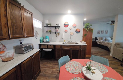 Escape to our charming casita in Huachuca City, AZ, perfectly situated between Sierra Vista, Tombstone, and Sonoita. Nestled on our private 5-acre property, this inviting retreat offers a cozy, relaxed, and comfortable vibe—ideal for a peaceful getaway.