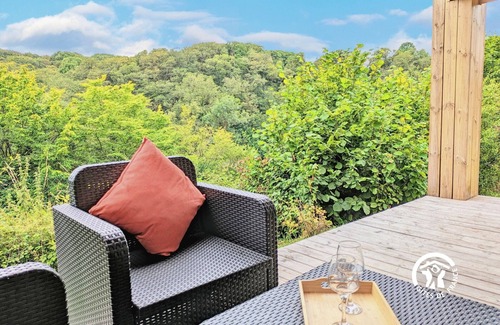 Are you coming with a group? The Coupeau campsite offers a total of four four-person leisure chalets and four two-person lodge tents, as well as bare pitches. Access to the chalet and the terrace is via a step. The living area, bedroom, and bathroom/toilet are on the same level. A second bedroom is on the mezzanine level, accessed via a ladder.