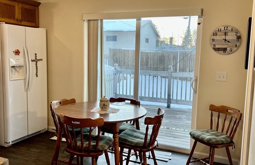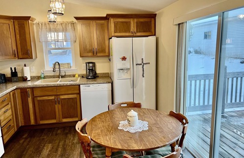 House comes with wifi, Amazon Prime and other streaming services. The first floor bedroom has a single bedroom with closet and ceiling fan. Kitchen is fully stocked and includes Keurig, coffeemaker and all necessary cooking utensils. Living room is open concept and flows into the office/desk area where there is additional seating. Bathroom is located on the first floor and includes tub. The second story has a loft bedroom style with two single beds and attached is another bedroom with a double bed and closet. The basement is unfinished but has a laundry and dryer and table for folding clothes.