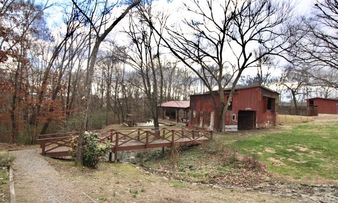 Over 50 restaurants within a 7 minute drive - Lenoir City is home to many delicious local food joints! Enjoy a clean cabin with a big scenic backyard ft. a pond, vintage barn, bridge, and fire pit.