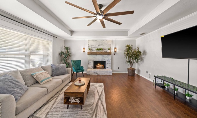 Welcome to our newly renovated contemporary home in South Tyler! Our 4 fully furnished bedrooms & 2 bathrooms offer utmost comfort. As our guest, you'll have access to a fully equipped kitchen, cozy living room with a 65' TV, dining room, private backyard w/ covered patio & much more. Prime location, only minutes away from all of South Tyler's shopping, dining & entertainment. With its charming ambiance and top-notch amenities, our home promises to make your stay truly unforgettable!