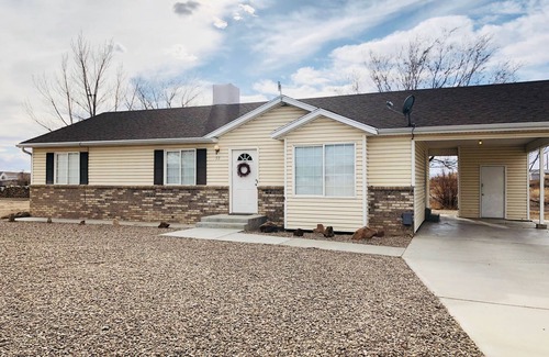 This cozy home is right in the middle of all the action. Moab, Goblin Valley, Lake Powell, San Rafael Swell are all very close by. Not only that, but Green River offers some of the best activities like river rafting, hiking, mountain biking, four wheeling, and amazing scenic views. The house is equipped with wifi and about 30 local TV channels. No cable at this time. The kitchen has a microwave, dishwasher, stove, oven, fridge, toaster and cooking ware. The house is equipped with a new AC unit. There is 2 queen size beds, 2 twin beds, and a pullout couch as well. There is a bbq and patio in the back. The yard is currently just dirt with weeds here and there. The house faces the west so you can enjoy beautiful sunsets. Neighbors are super friendly. Awesome suburban neighborhood right off of the main street of Green River.
