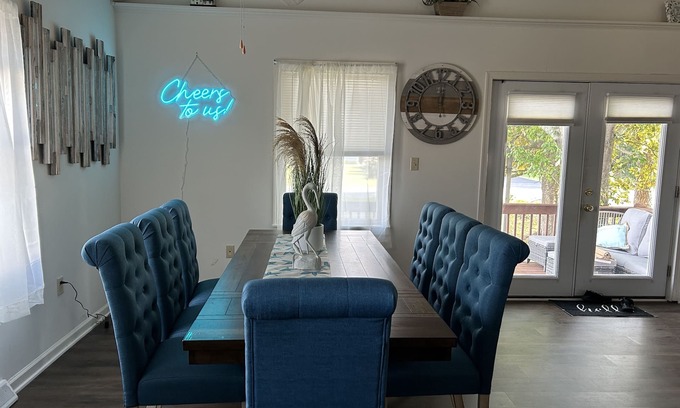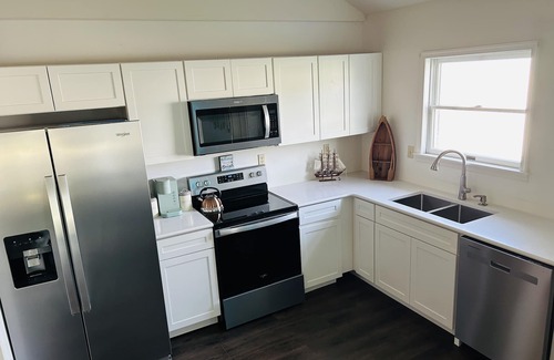 Look no further! Our charming coastal cottage offers everything you need to enjoy the best little beach town on the Delaware coast. Our quiet private street brings you to a front deck that is perfect to enjoy your morning coffee or breakfast smoothies. Entering the home, you will notice that the entire place is brand new! The beautiful brand-new kitchen offers a gorgeous table for eight, Alexa for your music selection, brand new appliances, including a state of the art oven equipped with air fryer, and the perfect room to host dinners and game nights after a long day at the beach. The living room boasts a 60-inch TV and a queen-sized sleeper sofa. The first level bedrooms both offer queen-sized beds and bathrooms with full showers. The second-floor loft includes two queen sized beds and a USB equipped futon with TV sitting area. The end table charging stations in the bedrooms make night times easy to know that every morning, your phone will be ready to snap more pictures of the beauty that is Bethany Beach. EVERY bed and mattress is brand new! Walk right out your front door and down the road to enjoy bayside sunsets (at the end of the street!), take a short walk to brand new local Bethany Brewery for live music, enjoy a seafood meal at Big Fish restaurant. Also in walking distance is the local liquor store, a bike/walking trail, an ice cream spot, and local crab shack! The back yard oasis offers a fire pit for nightly smores/ star gazing and a gas grill for BBQing. The beach is just a short three-mile bike or car ride (4 beach chairs included) and the central location allows for exploration of all that the De beaches have to offer. You are right in the middle! Make a left at Route 1, you are a short drive to Dewey, Rehoboth, and Lewes. Make a right at Route 1, you will find Fenwick Island and OCMD. Plenty of parking, convenient location, private single home on bay block road, front deck, firepit backyard, three bedrooms that sleep 8 people, queen sized sleeper sofa and futon for extra sleeping, and tons of suggestions on local fun! I guarantee you will return every year! Off seasons are just as great! Save on those condo resort fees and make yourself at home!