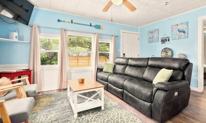 Enjoy a peaceful stay in this cozy 2 bed, 1 bath coastal cottage. On the front porch, enjoy a large yard with plenty of room for kids to play or to hang out with friends and enjoy stunning sunsets in the evening! Inside, sink into the super comfy couch with double electric recliners. Essentials provided including washer/dryer combo.