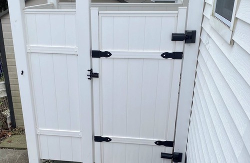 With a king bed, twin bed, and a full-size bunk setup, this charming property comfortably sleeps the whole crew. Inside, you’ll enjoy all the comforts of home—WiFi, air conditioning and heating, a washer/dryer, and two full bathrooms (plus a relaxing tub). There’s even an outdoor shower to rinse off the salt and sand after a beach day.