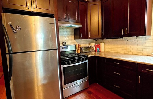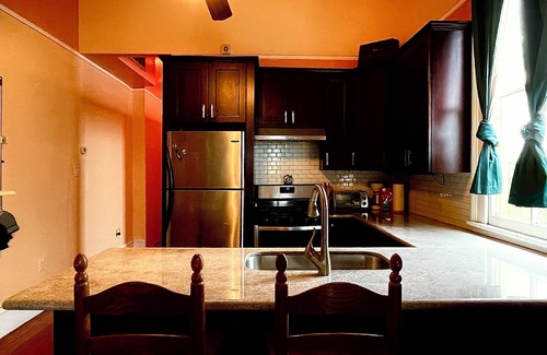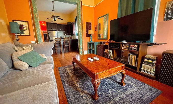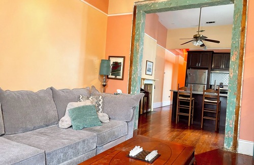 Bask in New Orleans Life and Culture in this vibrant and beautifully renovated historic home. Centrally located with public transport to SuperDome and French Quarter. This flat has all the amenities needed to get your party on. Spacious & functional kitchen with gas range, dishwasher and abundant counter space & washer/dryer. Cozy living room with entertainment system including vintage radio and record player. Two Queen size beds & HUGE couch - plenty of room for the whole gang!
