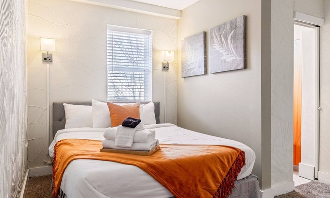 This cozy 1-bedroom, 1-bathroom apartment is perfect for couples or solo travelers by StayLage!. The bedroom features a comfortable queen bed, and the stylish living space ensures a relaxing stay. Conveniently located near shops and dining, it's ideal for exploring the area. Dog-friendly only with a $100 pet fee charged after booking if your furry friend joins you.