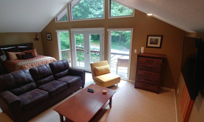 Enjoy the clean waters of Norris Lake, a premier lake of the Southeast, with this cozy 2nd floor studio suite in a residential area. Our above garage suite sits less than 250 ft from our private dock in Fisherman's Cove on a gentle slope. Unless you are in a very low car, you can drive down to the dock. A Stand up Paddleboard, kayaks, and large water mat are provided for your use free of charge and a tritoon boat and jet ski can be rented for an additional fee. * Additional tritoon/ski info at bottom.