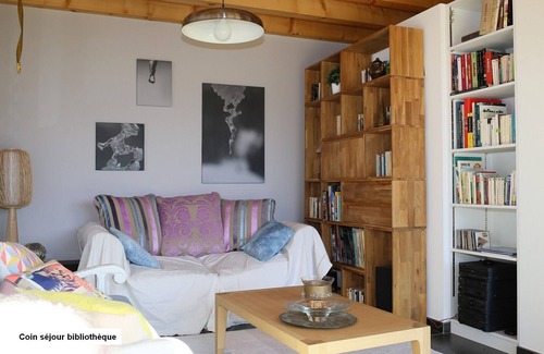 On the first floor, you will arrive in the relaxation area with a TV corner which opens up a magnificent view through the bay window over the entire gable. You will find a room with a double bed, a "dormitory" room with 4 beds of 90 which can be approached by 2 for the intimacy and the proximity of the couples. A bathroom with WC completes the first floor.