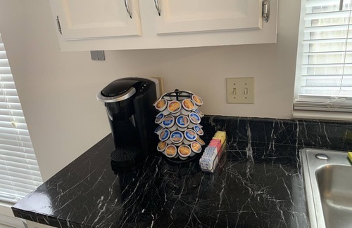 Our 3 bedrooms are furnished with 1 queen bed, 1 full bed, 2 twin beds and a queen size sleeper sofa. The kitchen is equipped with cookware to cook simple meals and kuerig to enjoy a fresh cup of coffee in the morning.