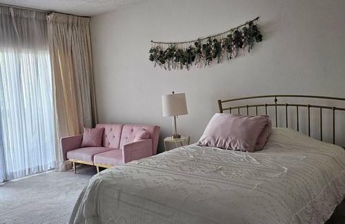 - Bohemian Inspired Home: with a Roomy Queen Bed, High-Speed Internet, Your Own Patio, and On-Site Laundry.