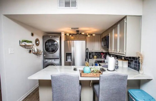 Conveniently located in South Lubbock, the condo provides easy access to Texas Tech, shopping, and medical facilities. The master suite is a private haven. Fast Wi-Fi throughout.