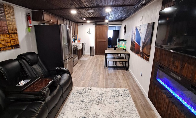 Cozy container: Unique design is located in Bastrop. Cozy container: Unique design provides accommodation, featuring Air Conditioner, Balcony/Terrace, Security/Safety, among other amenities. This House features Air Conditioner, Balcony/Terrace, Security/Safety, to make your stay a comfortable one.