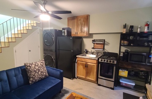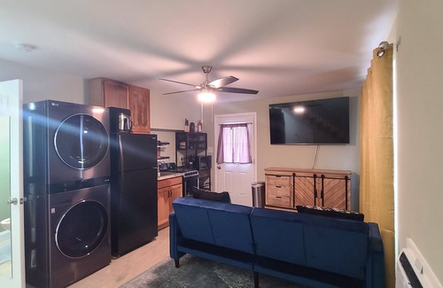 This 1 bed x 1.5 baths offers enough space for a party of 3, plus pets! The 534 total square feet provides is ideal for just one guest, or small family. Available are a comfortable Queen size bed and futon; and, combined laundry/kitchen facilities in unit. Smart TVs in both rooms, WIFI, tub/shower, linens, and a hotel-style heat/air unit for each room. Amenities too numerous to mention. Nice, peaceful background with view of Oak Ridge's Greenbelt. Convenient location: 5 mins from Oak Ridge's Main Street, 8 mins from Methodist Medical, 7 mins from Y-12, UCOR, & 5 mins from IBEW Local 270 Electric Union, 10 mins to Melton Hill Lake; & 15 mins to Knoxville!