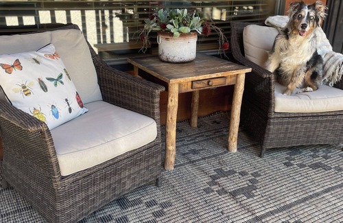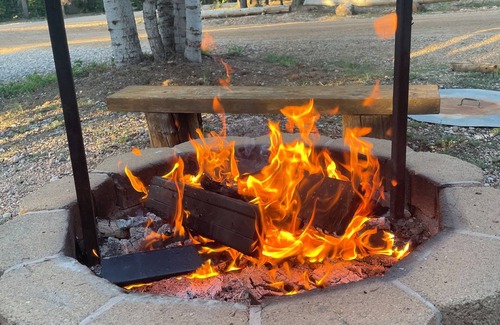 Cozy 2 bedroom cabin, wood burning fireplace, 65” smart tv, WiFi, washer and dryer, dishwasher, large deck for relaxing outside, fire pit, outdoor hammock, horse shoes, close to town and restaurants. Central heat for winter but no A/C for the summer