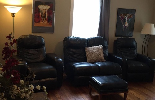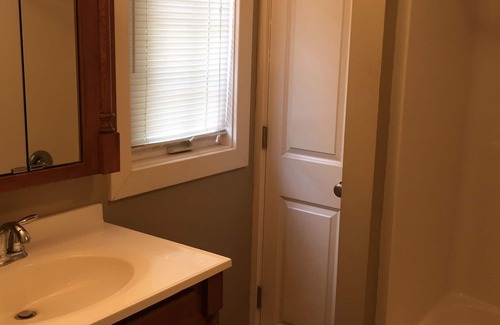 Cozy cottage totally furnished with everything from washer/dryer, full kitchen, linens, appliances & gadgets. 2 bedrooms, the large Master bedroom has a Queen bed and plenty of natural light and storage.The second bedroom is small with a full bed. Large family room and eat in kitchen . Wrap around porch, Parking for 3 vehicles. Easy location , 1 mi to xway, restaurants, shopping, parks and entertainment . Everyone loves this property.