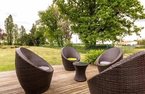 Gîte quietly located in a green setting of 8000 m², 3 km from the village and 1.5 km from Lake Grand Lieu, near the owners' house. Enclosed garden of 2500 m² with 2 terraces. Boules field, ping-pong and 1 adult bike available.