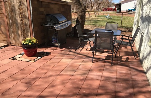 Blanding is surrounded by more National parks and state monuments than anywhere else in the country and this home is the perfect base camp for all of your adventures in the southeastern Utah/ southwestern Colorado region. Our historic home is located in the heart of Blanding; it has 2 bedrooms and 1 bathroom. There is a queen size bed in one bedroom, the other bedroom has a full size bed. There is also a pack-n-play fold out crib for your convenience. The kitchen is fully equipped with cookware, dishes, utensils, coffee pot, microwave, toaster, etc... Everything you need to make your own meals.There is also a barbecue grill outside. At one end of the main living area you'll find a couch, recliner, TV and DVD player, and at the other end is the dining table. The large utility room has a washer and dryer, plus enough room for a couple of bicycles, hunting or climbing gear, or anything else you need extra room to store inside during your stay. Very clean and comfortable with lots of updates, yet it retains many of the features you love to see in old homes. We have big plans for the yard but it is currently a work in progress.