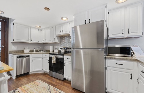 The little blue cottage offers 2 bedrooms with memory foam queen beds and an open loft with a twin bed.
