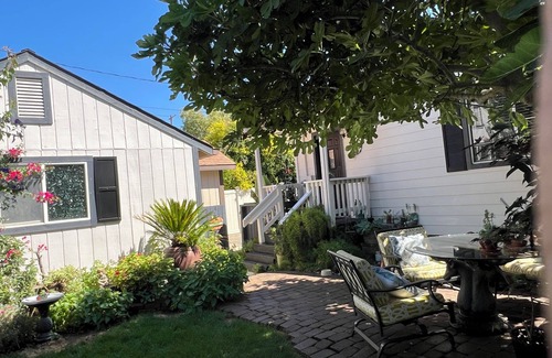 Welcome to easy living in this upscale, homey cottage and lush private fenced garden. Living area is furnished with comfortable stylish pieces, 55" TV has 220 Cable channels, PLUS Prime, Peacock plus Netflix are set to view with no passwords needed. Fast WiFi is included.