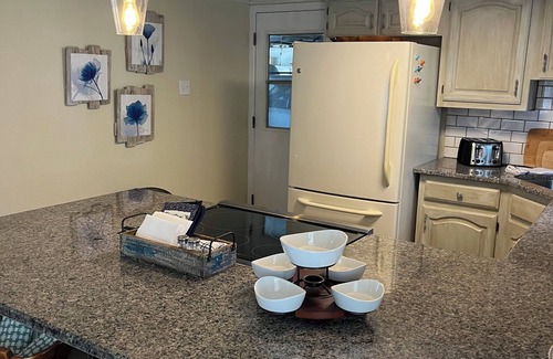 Newly updated Grandma's Cottage is a 2-bedroom house, this cozy home is close to the newly opened Bois d’Arc lake. Step into this gorgeous property and feel instantly at home. With a king bed and a queen bed, guests will have a tranquil and enjoyable stay. The house features modern amenities like WiFi, smart TVs, a washing machine, heating, and AC. The comfortable bedrooms sleep up to 4 and the bathrooms are fully equipped with a hair dryer, bath and a shower. Whether you're exploring the town, going fishing at the nearby Lake, or simply relaxing indoors, we think our place will help you experience everything Bonham has to offer.