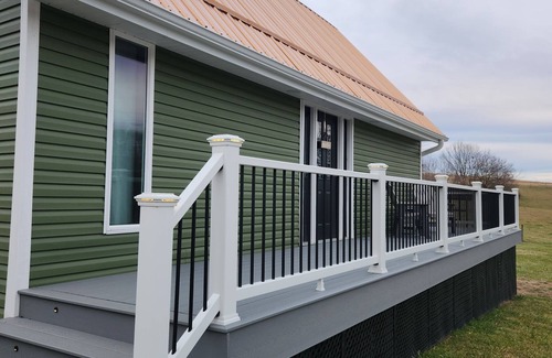 Looking for a place to unwind & relax? Come stay at The Green Cottage. It is located in a rural area of Ohio, 45 minutes from Columbus and 1 hour south of Holmes County/Amish country. You can sit on the wrap around deck and enjoy the sunrise and a cup of coffee. The lofts are not accessible. We have Spectrum internet available here. There are Amish living here in the community and so you might hear numerous buggies going past.