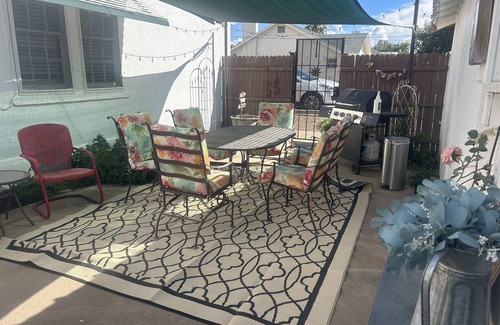 Located in the historical residential district. Cozy cottage with breakfast nook, private backyard patio with gas grill, indoor shuffleboard table, detached garage, walking distance to historic downtown Safford.