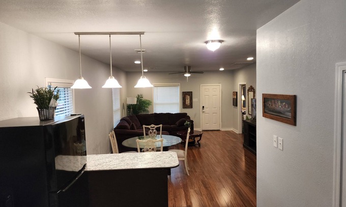 Quite neighborhood. Big yard with lots of parking for cars or boats. King size adjustable bed. Cozy sectional in living room. Near Universities and Water Park. Large back porch. Beautiful open floor plan.