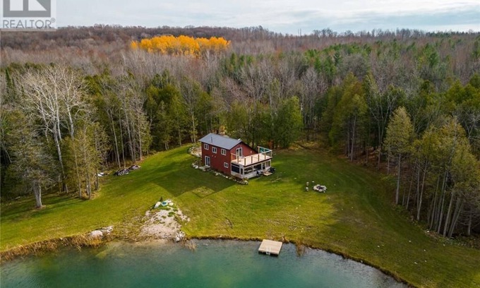 This cottage country home offers a peaceful place for for family and friends to gather. It sits on 25 acres of land surrounded by trees, making it the perfect private getaway experience.
