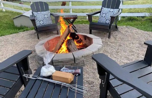 Cottage, Barnyard, fire-pit area, drive way, and river front. Stroll the pasture but keep all gates closed!!! Walk down the Red Lily road to reach our riverfront. The main house is the host's private residence. The two homes are separated by a wide driveway.
