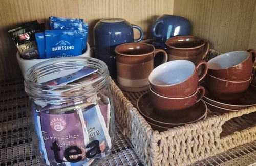 As you settle into this 1-bedroom, 1-bathroom rental, you'll find a living room, a dining area, a BBQ grill, and a fireplace. Bathroom amenities include towels, toilet paper, and soap. The kitchen is equipped with an oven, a stovetop, and a refrigerator, as well as a coffee maker, an electric kettle, and cookware.