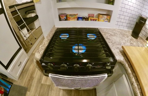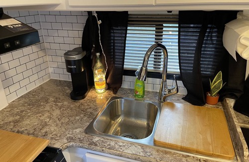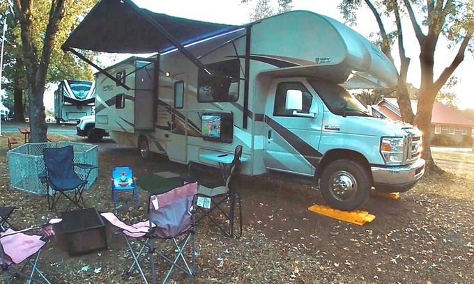 32ft newly remodeled Thor Motor Coach has a very clean, bright, modern and beachy theme. One private master bedroom with a Queen memory foam mattress, private double bunks, private queen bunk space over driver seats, fold out couch and two fold down dinettes. Fully stocked with everything you’ll need and more for cooking and camping. Large refrigerator and freezer, microwave, camping chairs, outdoor lighting, keep it dark with curtains and covers on every window and opening. Tons of camping chairs, fire pit grill, outdoor TV, 3 TVs inside and one mounted tablet in bunk area. 2 Roku’s and DVD players with DVDS, and so much more! If staying at one of the three popular campsites near the Grand Ole Opry, it’s a 1 minute drive from all three campsites to Opry Mills Shopping center, restaurants, bars, mini golf, go carts and more. 14 minute drive to Downtown Nashville with shuttles to and from if needed.