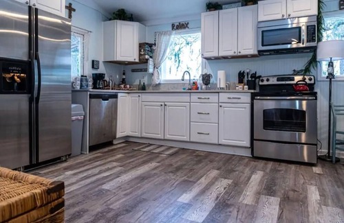 Open floorplan includes a queen bed, a queen murphy bed, and a sofa bed. All linens readily available in the cottage.