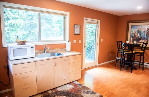 This 1,000 square foot, one-bedroom oasis, complete with living room, full bath, kitchen, large sundeck and ample outdoor space with BBQ area is surrounded by acres of private forest and trails. A short walk from your front door and out the private gated entry, you will find trails winding through the woods or just take a stroll down the road to visit with the local fauna; a resident flock of turkeys and Columbian White Tailed Deer are often seen as well as numerous species of birds.