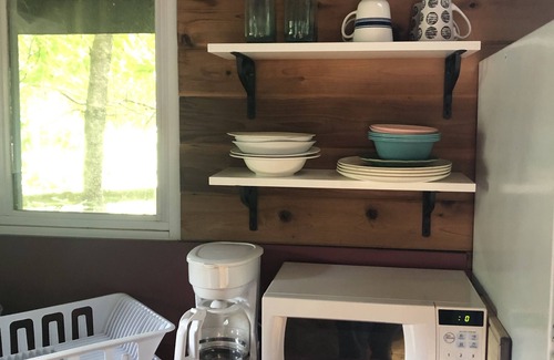 Rustic, charming cottage nestled in the woods yet steps from your private Sound beach. Enjoy beautiful sunsets over the water and great swimming as well as kayaking and fishing. This Cottage is in a much more private, quiet and wooded area than other nearby communities. Updgraded stainless steel appliances and new washer and dryer. Spend the day at the Sound then grill your dinner on the deck! Mere minutes from the Riverhead Cider House, North Fork vineyards, farms, restaurants, golf, Splish splash water park and Tanger Outlet Mall. This is a unique, community comprised of mid-century cottages and homes offering a serene escape yet just a short ride to the Hamptons. Two bedrooms and a full size futon in the living room allows for six guests. Cottage has air conditioning (window units) as well as heat.