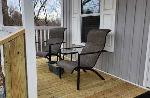 This cottage is equipped with a full kitchen including fridge, stove, microwave, dishwasher and coffee pot. The living room is equipped with a couch, recliner and Smart TV with all the favorite apps. Wind down from the long day with a cozy queen sized bed! The couch pulls out into a queen sized bed for additional occupancy. Dirty laundry? Don’t stress, the cottage is equipped with a washer and dryer. Looking to enjoy the serenity of outdoor living? Enjoy the private deck overlooking the private fire pit and grill!