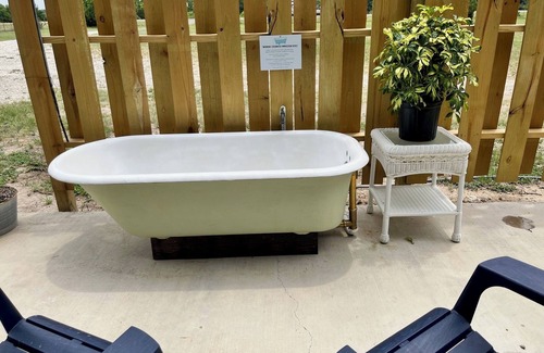 Enjoy the simple pleasure of an invigorating soak under the open sky with our vintage outdoor bathtub. Supplied with a single cold-water tap, it offers a refreshing escape—perfect for cooling down on hot summer days or embracing the chill of an early morning rinse.